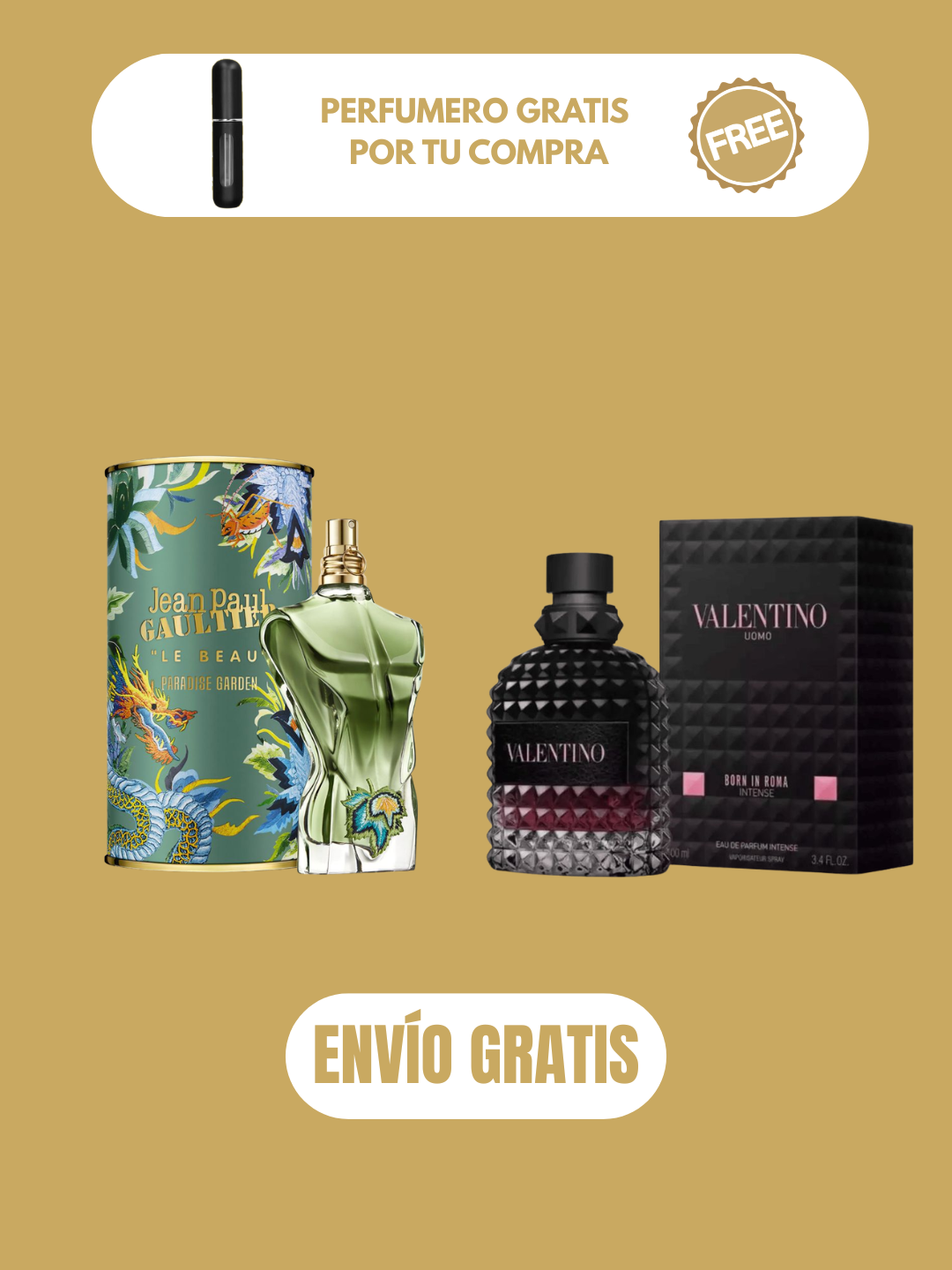 2 PERFUMES + OBSEQUIO (Born in roma intense - Paradise garden + Perfumero)